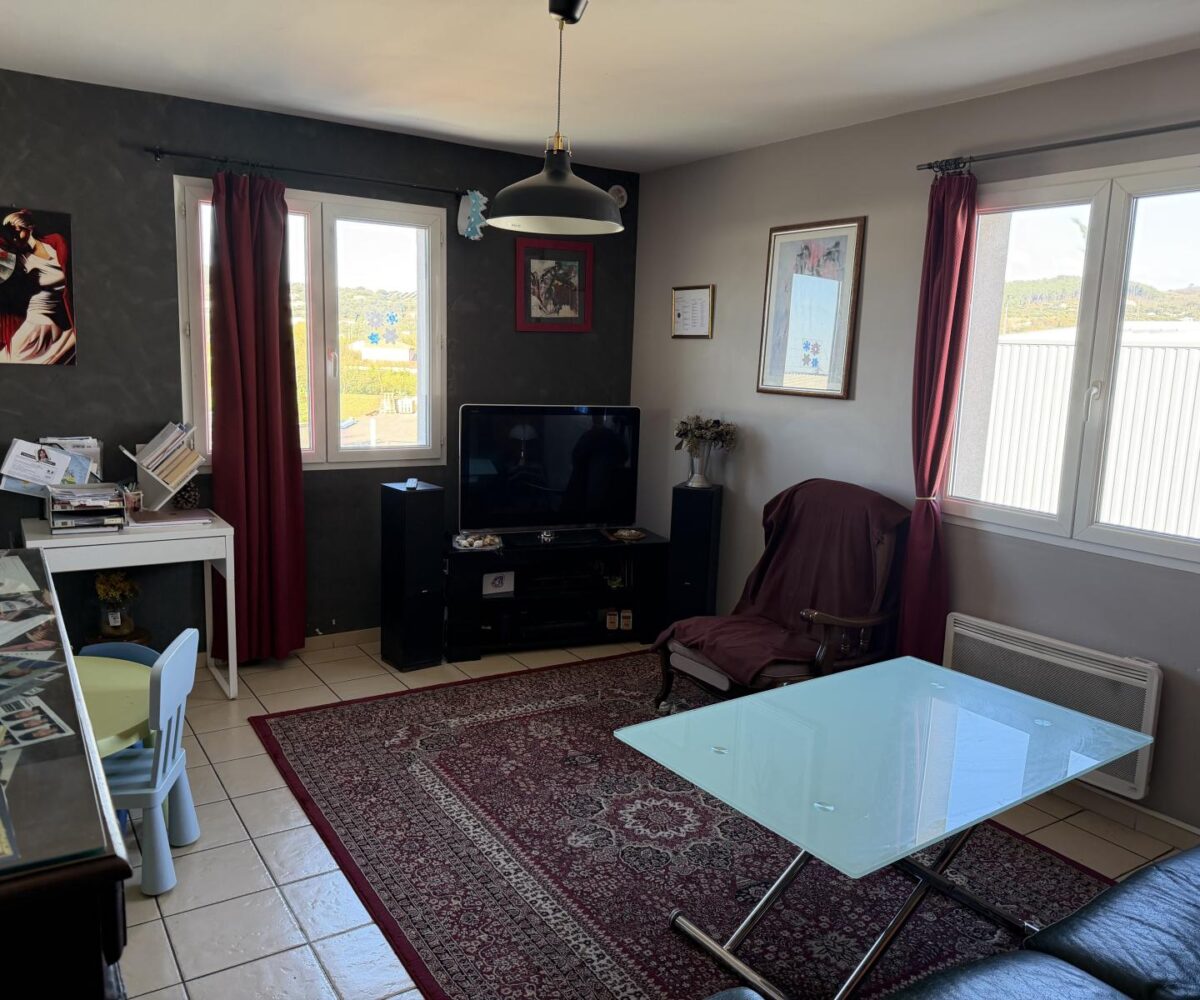 – Une grande pièce accueil équipée de climatisation réversible 26 m² avec grandes baies vitrées