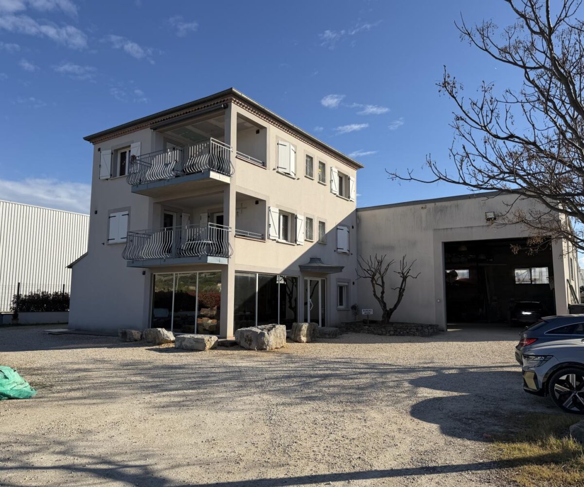 Ensemble immobilier à usage mixte à proximité d’Alès composé de bâtiments à usage professionnel et privatifs en excellent état édifiés sur un terrain clos et arboré de 2100 m² dont 800m² encore constructibles .