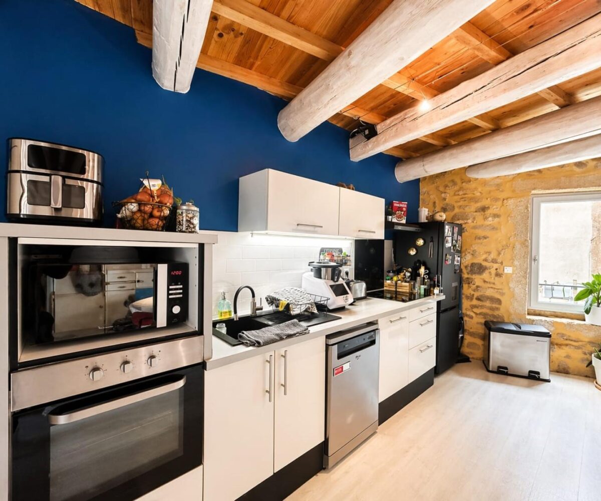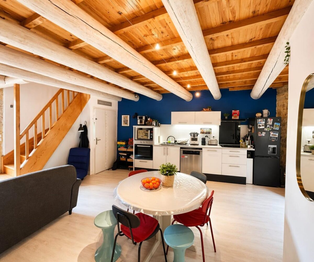 Au premier étage, vous trouverez une agréable pièce de vie avec cuisine, ouvrant sur un balcon, ainsi qu’une chambre.