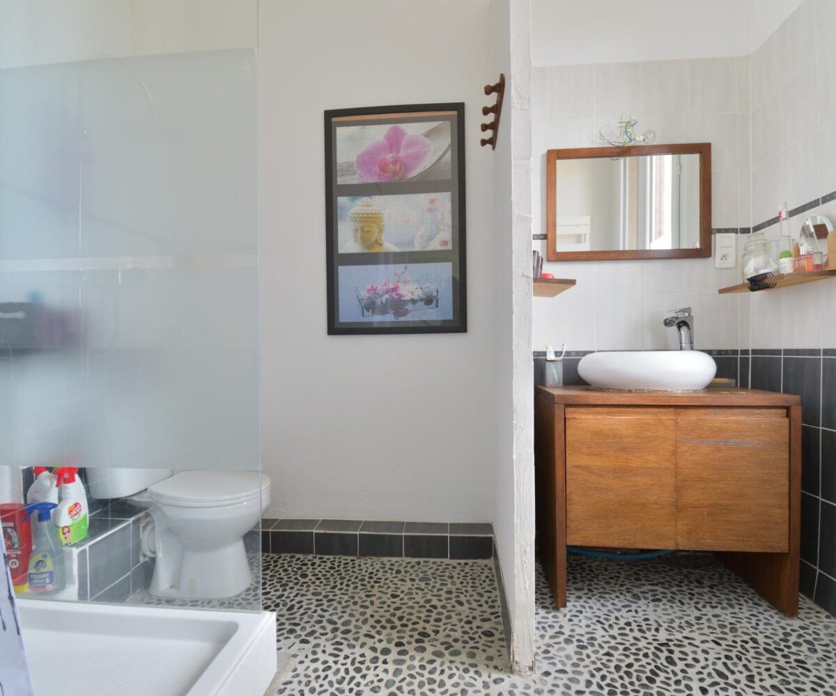 Le deuxième étage accueille deux chambres supplémentaires et une seconde salle d’eau, portant l’ensemble à quatre chambres, 2 salles d’eau, 1 toilette à chaque niveau, idéal pour une famille.
