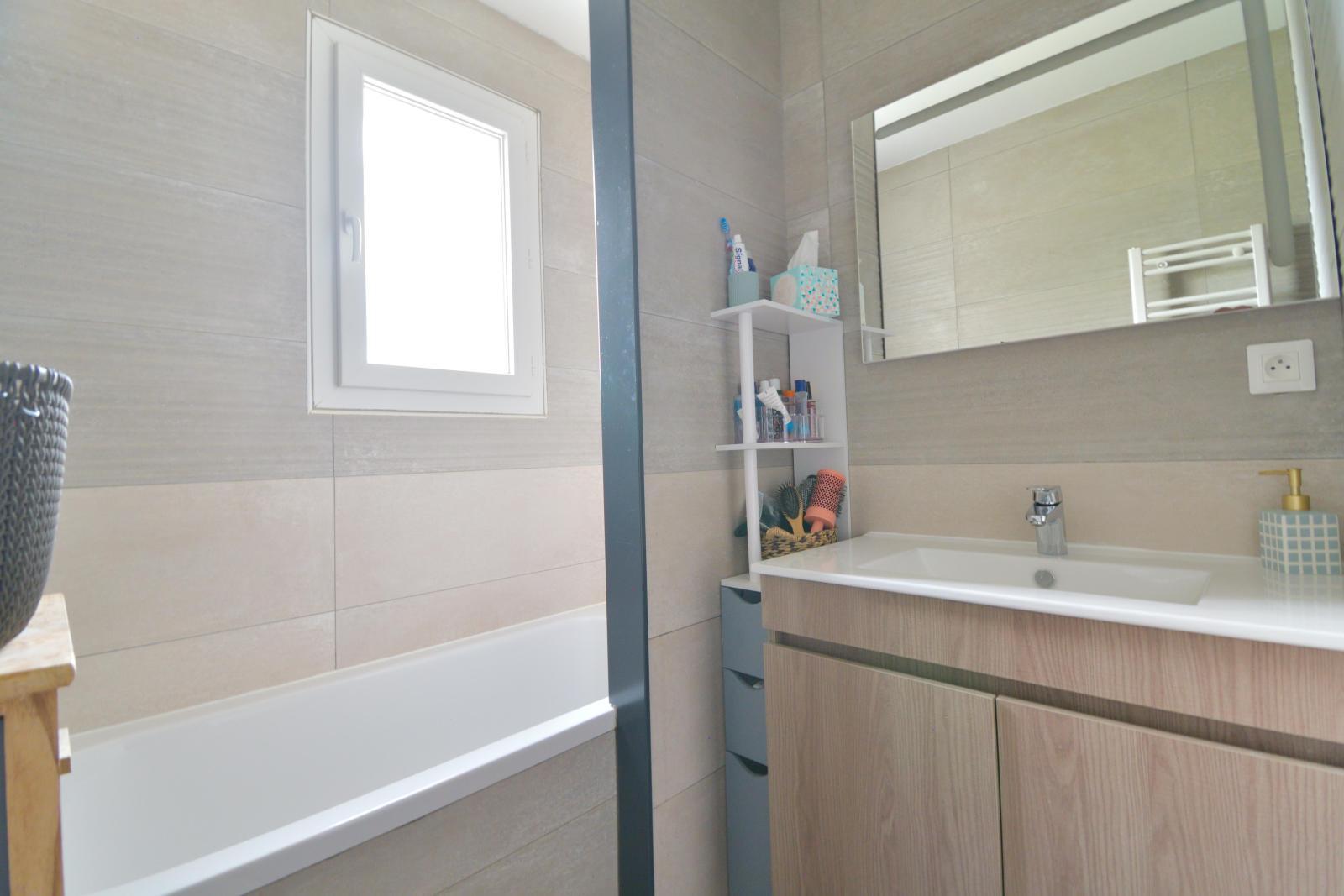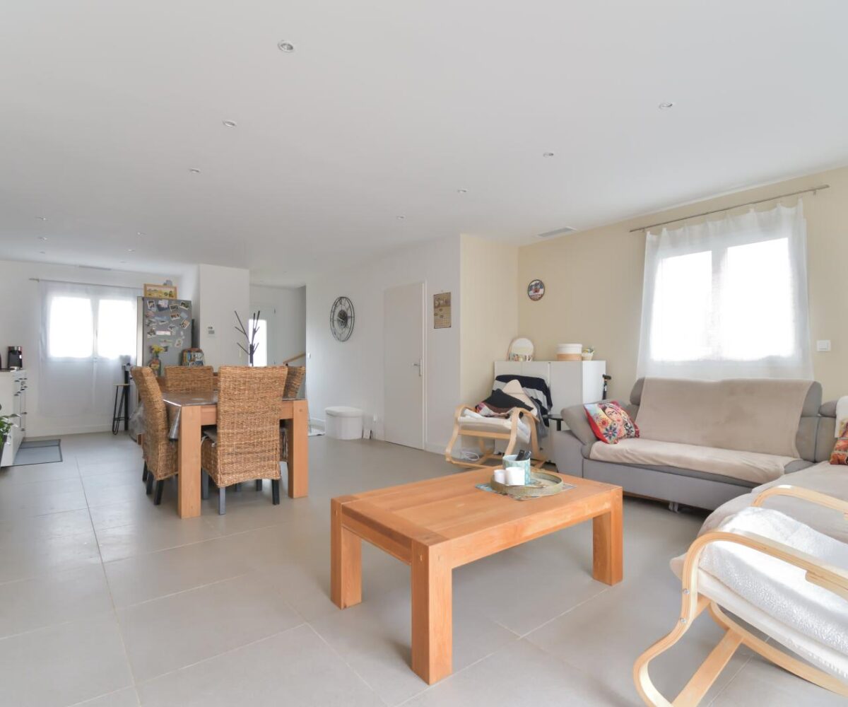 Découvrez cette maison récente de type R+1, 95m² habitable, construite en 2022, bénéficiant encore de la garantie décennale, offrant des prestations modernes et un excellent niveau de confort énergétique. Vous profiterez d’une vaste pièce de vie séjour / salle à manger avec cuisine ouverte d’environ 50 m², idéale pour recevoir. Un toilette indépendant avec lave-mains […]